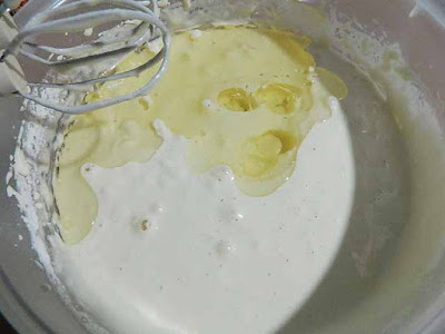lasciandone da parte un cucchiaio e continuare a montare, poi l’olio