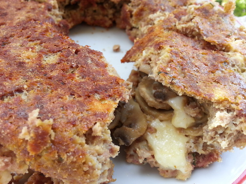 Ecco un modo diverso di preparare il polpettone, in questo caso con un ripieno di funghi e formaggio ma si può farcire con qualunque cosa. Si cuoce in uno stampo da ciambella oppure da plumcake, così è più facile da gestire perché non bisogna voltarlo in cottura col rischio di romperlo. Io l’ho cotto nella pentola-fornetto Versilia (vedi QUI) e nello sformarlo mi si è un po’ rovinato perché si era attaccato al fondo, quindi consiglio uno stampo antiaderente. Comunque un piatto buono e semplice, ma dall’aspetto insolito!