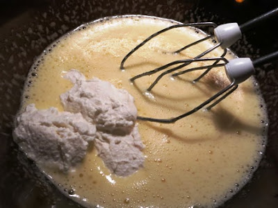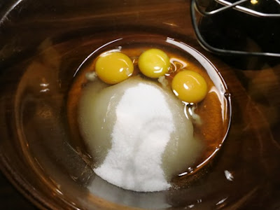 Montare le uova intere con lo zucchero e con le fruste elettriche..