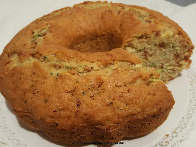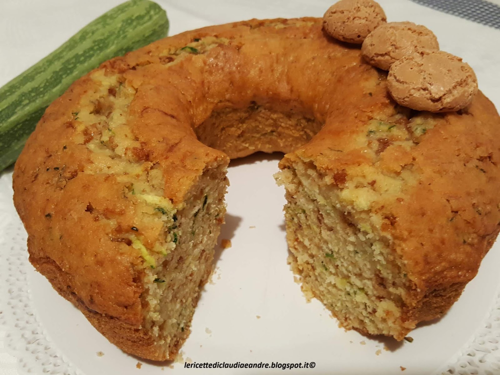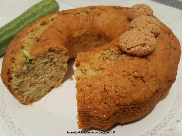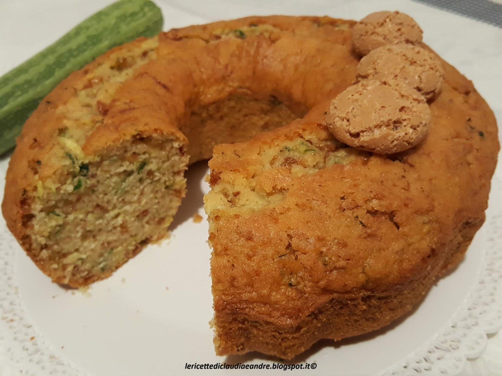 E’ il tempo delle zucchine e tanti di voi sicuramente avete l’orticello e non sapete più come prepararle e con questa ricetta volevo darvi un aiuto nel poter smaltirli. Io non c’è l’ho orto, al inizio li compravo ma ora me ne regalano e non posso fare altro che sbizzarrirmi nel prepararle, tra salati e dolci danno tanta soddisfazione. Magari vi sembra strano usarle nei dolci, ma basta provare e vedrette che ne rimarrete sorpresi di quanto vengono buoni, finché non si prova non si sa. Io dopo aver fatto un altr’anno la “Torta dolce con zucchine e noci“, ho deciso di preparare per la mia colazione e merenda una ciambella con zucchine, arricchita con degli amaretti, visto che avevo una confezione iniziata. Una prova riuscitissima, ecco a voi la ricetta, non vi resta che provarla, auguro che almeno la mia fettina vi ha fatto cambiare l’idea pensando che nei dolci non potrebbe stare bene.