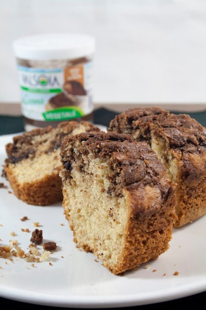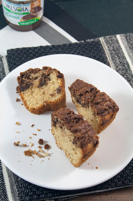 Soffice, genuina e super buona da gustare la ciambella di oggi, con l’aggiunta di crema vegetale alle nocciole e cacao magro di Valsoia, ricca di fibre e senza olio di palma.