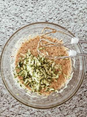 Preparazione della ciambella nocciole e zucchine