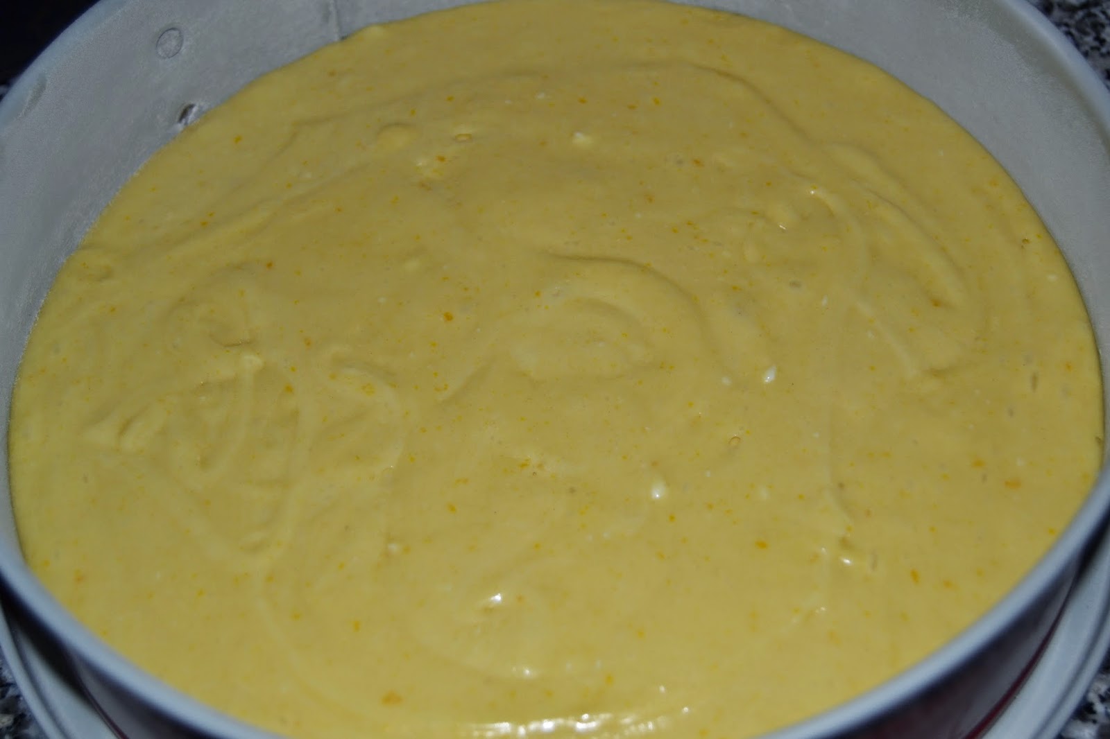 Ungere con il burro uno stampo rotondo per torte di circa 26 cm di diametro, infarinarlo, eliminare la farina in eccesso e versarvi l’impasto.