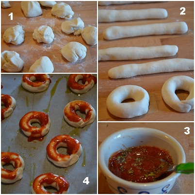 Riprendere le ciambelle e con un cucchiaino disporre il pomodoro sulla superficie completando con abbondante origano.