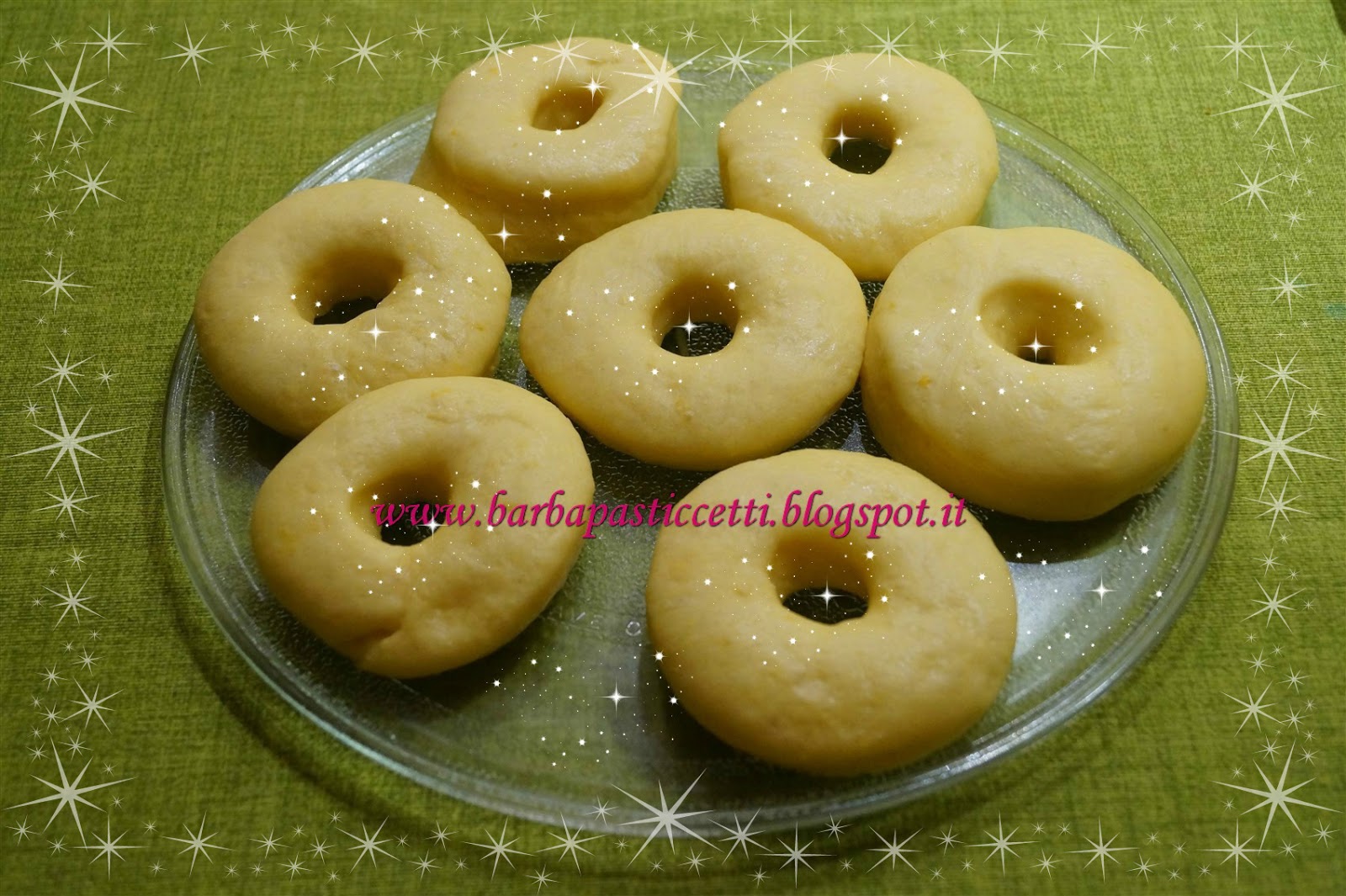 Stesso discorso del precedente panetto ovvero farlo lievitare in un posto caldo e quando sarà raddoppiato di volume, formare con esso, sul proprio tavolo da lavoro, bombe e ciambelle.