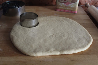 Con una tazza o un coppapasta, formare dei cerchi e con taglia biscotti piccolo (potete anche utilizzare il tappo di una bottiglia), fare un buco al centro, per formare le ciambelle.