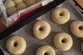Quando le ciambelle sono ben lievitate, scaldare il forno a 180° C.