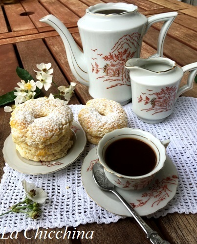 C’è voluto davvero poco più di mezz’ora e delle ciambelline profumate e morbidissime uscivano dal forno: purtroppo però sono sparite troppo presto e io, per il mio momento caffè, ho dovuto accontentarmi di una fetta biscottata…