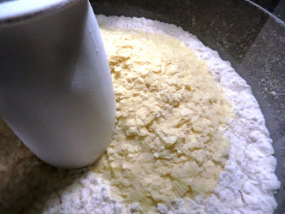 Porre nel boccale del mixer le due farine, il preparato per purè e il cucchiaino di sale…