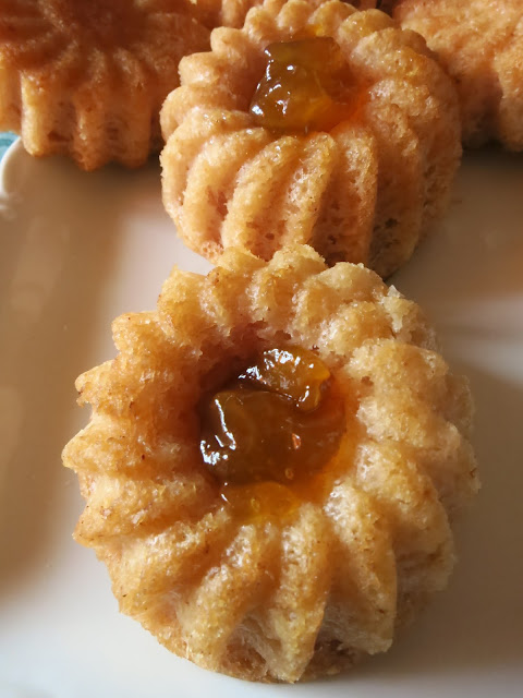 Si possono spolverizzare con zucchero a velo o farcire con un poco di marmellata a piacere come appare qui sotto…