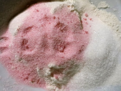 Lo zucchero è clorato di rosa perché ho aggiunto un poco di colorante alimentare..