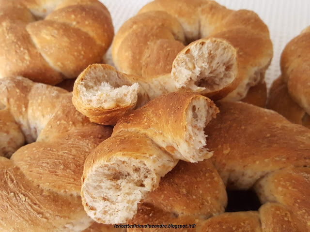 - Piegarli a metà e attorcigliarli come da foto e poi unire le due estremità per dare la forma alla ciambella.