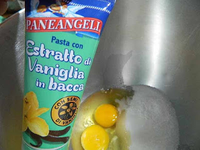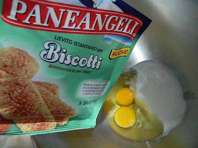 In un’ampia ciotola mettere le uova con lo zucchero, il Lievito per Biscotti,