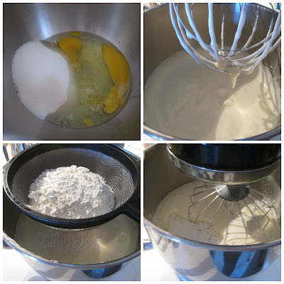 - Montate le uova con lo zucchero in una ciotola (o con la planetaria o con un frullino elettrico) fino a renderle chiare e spumose