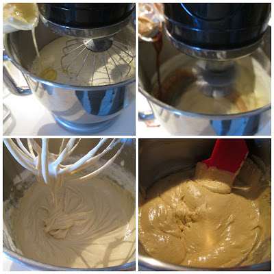 - Aggiungete la farina setacciata con il lievito, il burro fuso e mescolate per bene con una spatola, dal basso verso l’alto per non smontare il composto