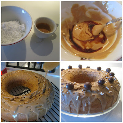 Ho voluto in qualche modo replicare quel dolcissimo ricordo provando a preparare una semplice ciambella al caffè, ingolosita con una glassa di zucchero al caffè e qualche pralina o scaglietta di cioccolato bianco…l’aroma è lo stesso, la morbidezza anche…l’esperimento, direi, è perfettamente riuscito!