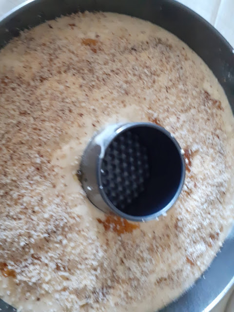 300 gfarina,125g.yogurt greco,100g.latte,2 uova ,120g.zucchero,50g.mandorle pelate grattugiate con 1 cucchiaino di zucchero,1 bustina lievito per dolci,1 pizzico di sale ! ………………………………………
