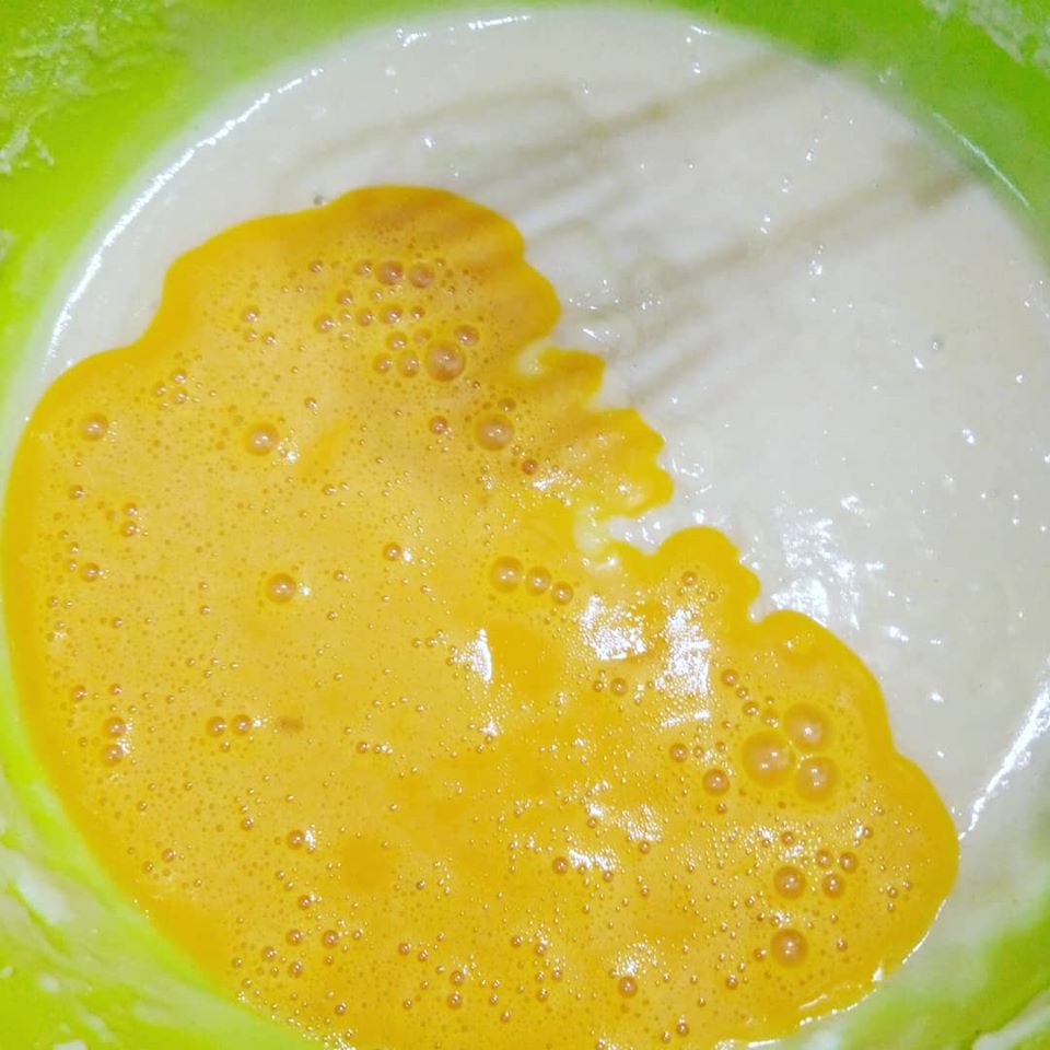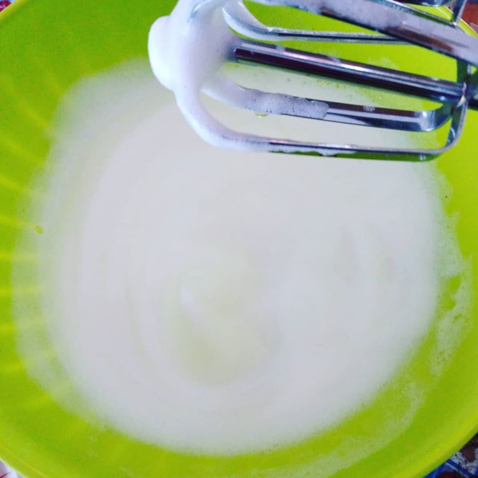 Montate gli albumi ed in essi incorporate olio ed acqua, mescolate fino a rendere l’impasto spumoso.