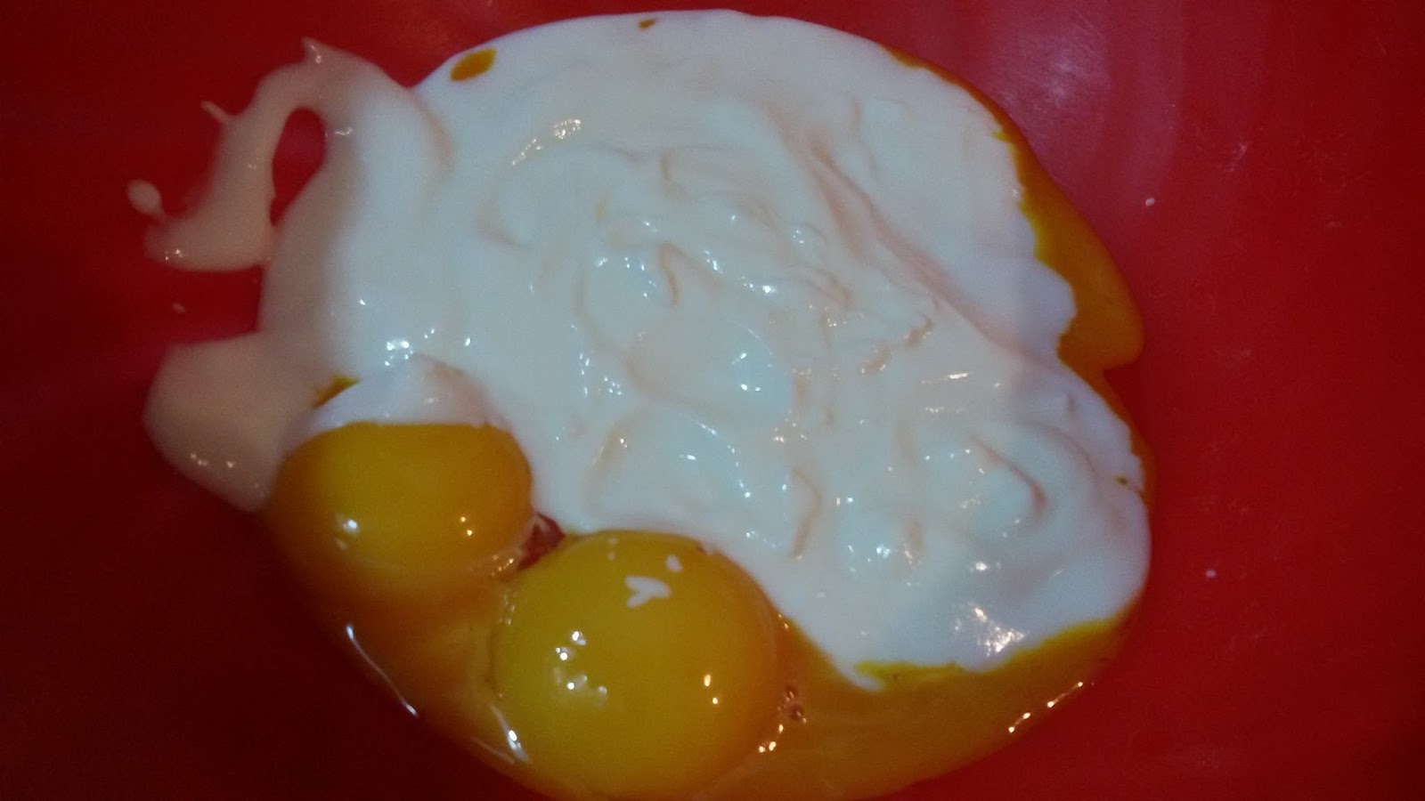 In un’altra ciotola sbattete i tuorli con lo yogurt