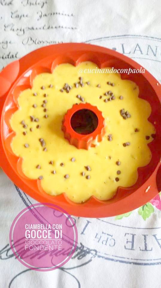 Aggiungete il lievito setacciato alla ciotola e mischiate per amalgamarlo, poi aggiungete le gocce di cioccolato ben fredde da frigo (così non si depositano nel fondo dello stampo) e mischiate fino a distribuirle bene. Imburrate e infarinate una teglia per il ciambellone del diametro da 25cm, per me Ciambella Savarin in silicone – Happyflex . Trasferite l’impasto nello stampo e cuocete in forno caldo statico a 180-200°C per circa 35 minuti finché diventa dorato in superficie.