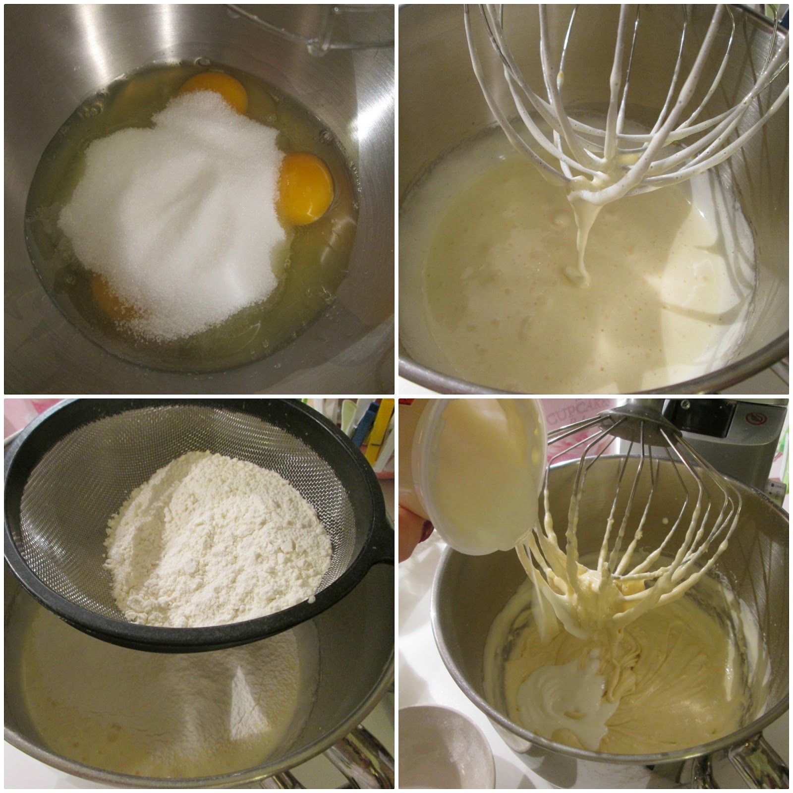 - Montate le uova con lo zucchero in una ciotola (o con la planetaria o con un frullino elettrico) fino a renderle chiare e spumose