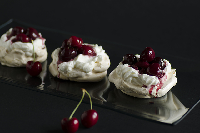Per l’occasione ho preparato delle minipavlove guarnite con panna e opportunamente con le ciliegie cotte.