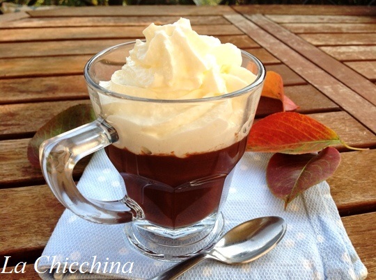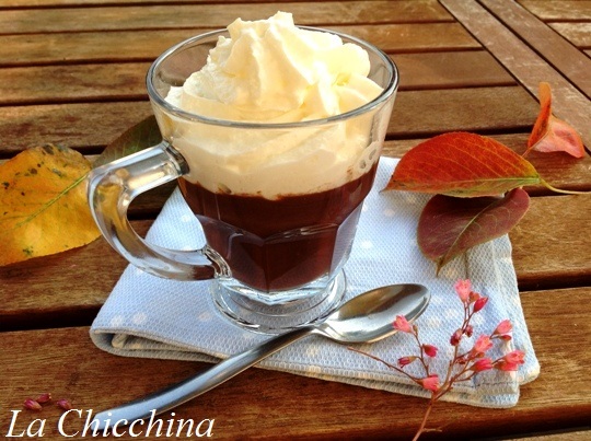A me piace sempre, ed ora che le giornate si accorciano e le temperature iniziano a cambiare, ho ripreso a prepararla: è una preparazione veloce, facile e anche economica; c’è chi utilizza il cioccolato fondente, ma a me piace così: risulta più leggera… Ehm…No, quella montagna di panna non è per me, è per il gatto!!!!