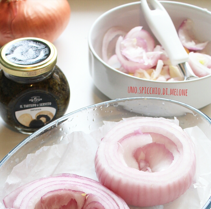• q.b. di “IL TARTUFO è SERVITO” di URBANI TARTUFI (è una crema al tartufo molto saporita, per cui vi consiglio 2-3 cucchiaini per cipolla, ma potete anche abbondare)