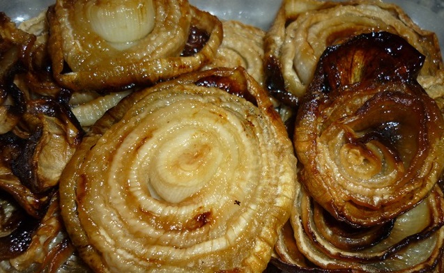 Cuocere in forno a 180°C per circa 30 minuti: le cipolle devono ammorbidirsi, caramellarsi e bruciacchiarsi leggermente.