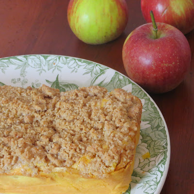 In una ciotola mescolate la farina, lo zucchero di canna, ½ cucchiaino di cannella incorporate il burro e con le dita lavorate gli ingredienti fino ad avere delle briciole grossolane con queste ricoprite la superficie dell’impasto con le mele.