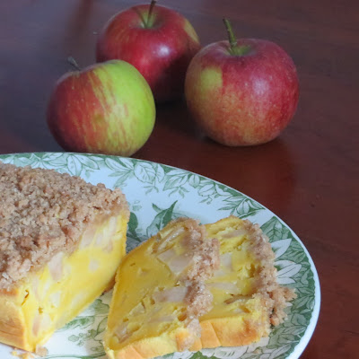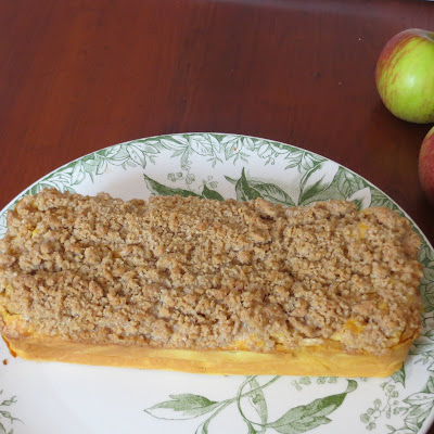 In una ciotola mescolate la farina, lo zucchero di canna, ½ cucchiaino di cannella incorporate il burro e con le dita lavorate gli ingredienti fino ad avere delle briciole grossolane con queste ricoprite la superficie dell’impasto con le mele.