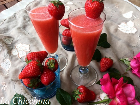 Che buono questo cocktail… Lo avete mai provato? Si tratta sostanzialmente di un mix di prosecco ghiacciato e fragole dolci e succose schiacciate (o frullate), la cui purea viene poi passata attraverso un setaccio per eliminare i semini.