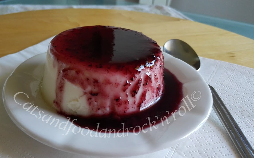 Sformare e guarnire a piacere, io con sciroppo di mirtilli fatto in casa.