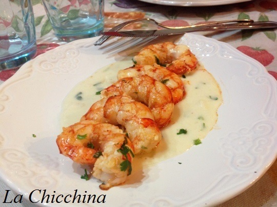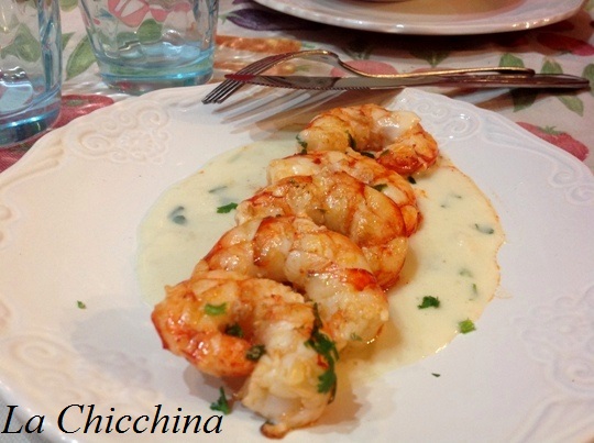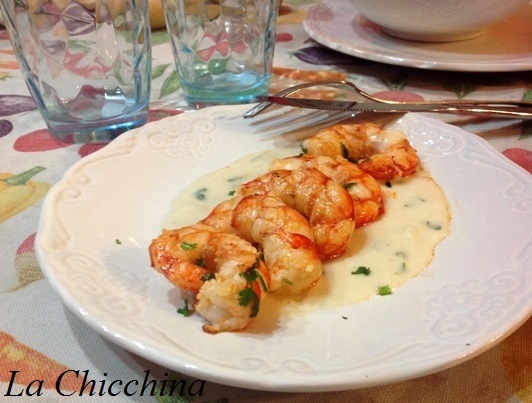 Oggi, giorno di mercato al mio paese, sono andata dalla mia pescivendola e, visto che aveva dei gamberi bellissimi, mi sono riproposta di provare a preparare “ad intuito” la ricetta assaggiata tempo fa.