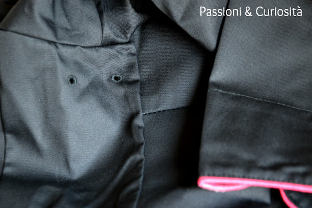 Design unico, di colore nero, con bordi di colore rosa sul collo, sulle maniche e sulla tasca sul petto, per avere anche in cucina un look raffinato e moderno. Nero e rosa una combinazione perfetta.