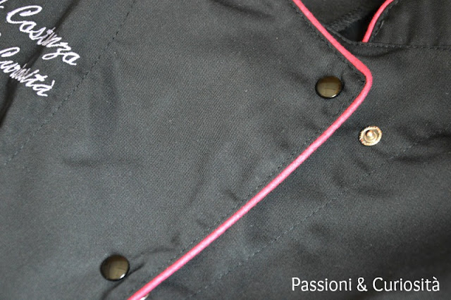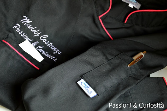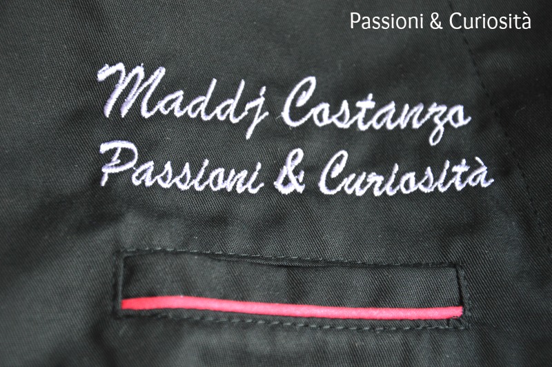 Ulteriore vantaggio offerto da Manelli , come per la giacca anche per il grembiule, è la possibilità di poter far scrivere con un ricamo eseguito a macchina, un testo di propria scelta, con il carattere e il colore che si desidera.