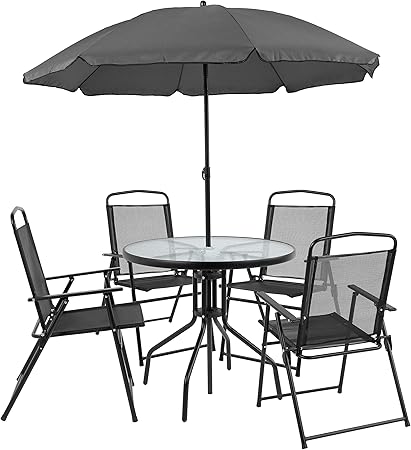 Flash Furniture Nantucket 6 Piece Black Patio Garden Set With Table Umbrella And 4 Folding Chairs Gm 202012 Bk Gg