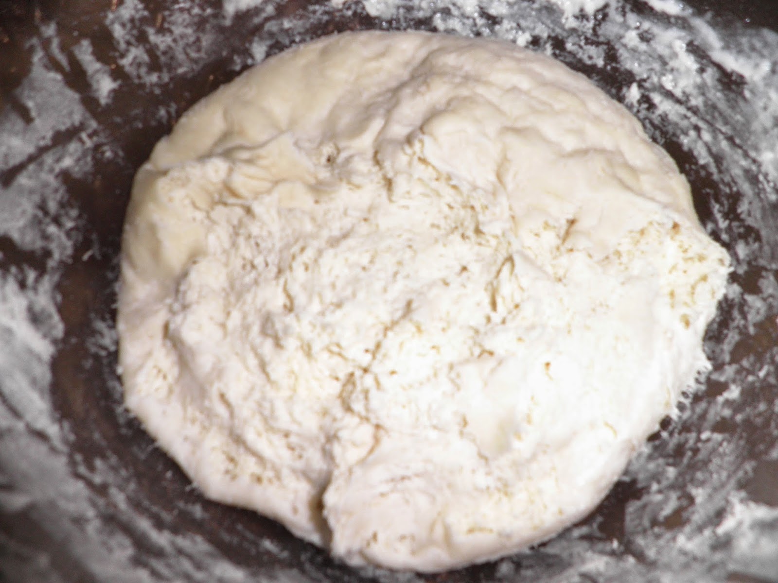 Come si presenta il primo impasto: elastico e morbido. Mettetelo in una ciotola coperto da una pellicola e lasciatelo a lievitare per tutta una notte o fino a quando sarà cresciuto di 3 volte.
