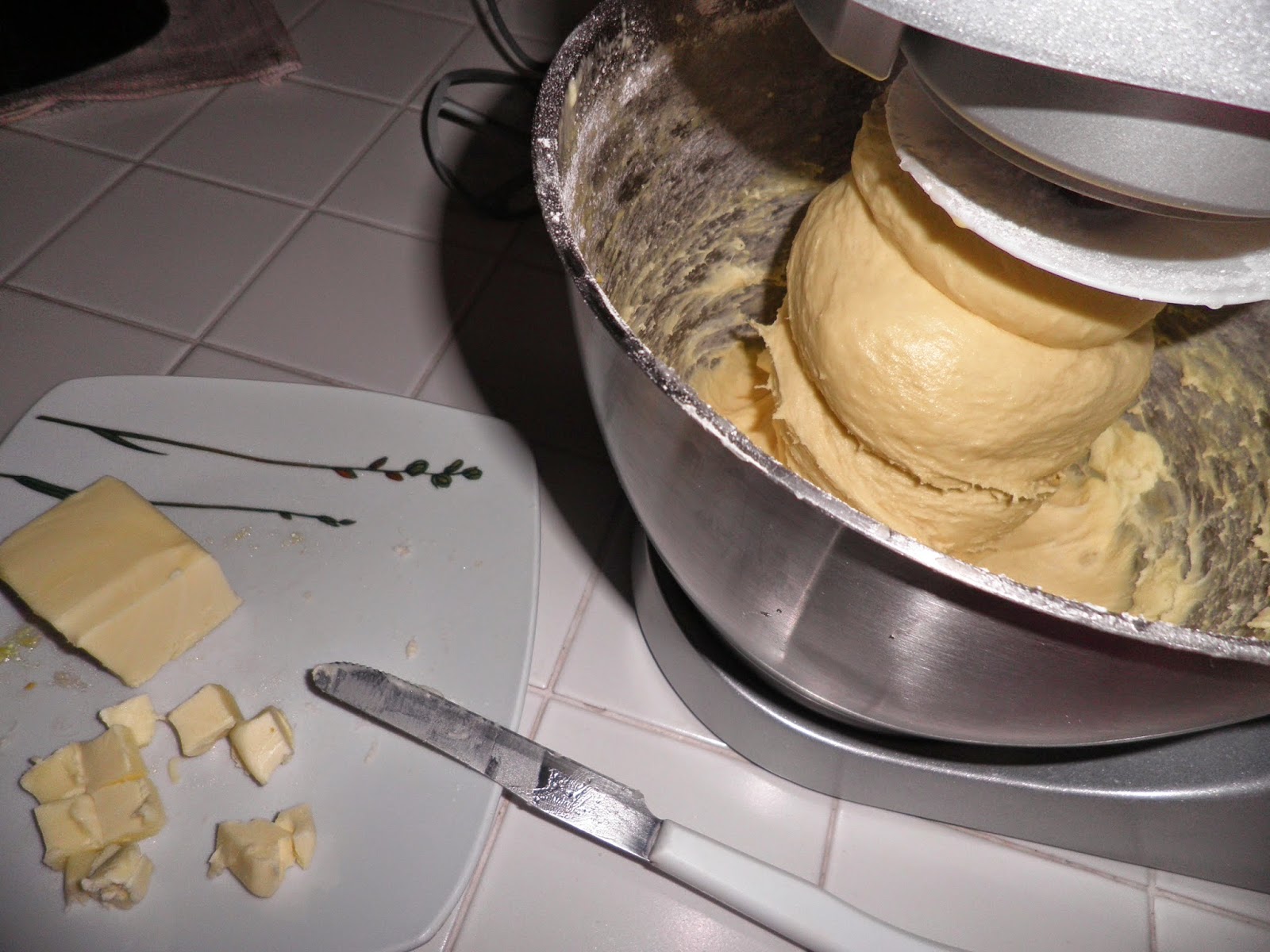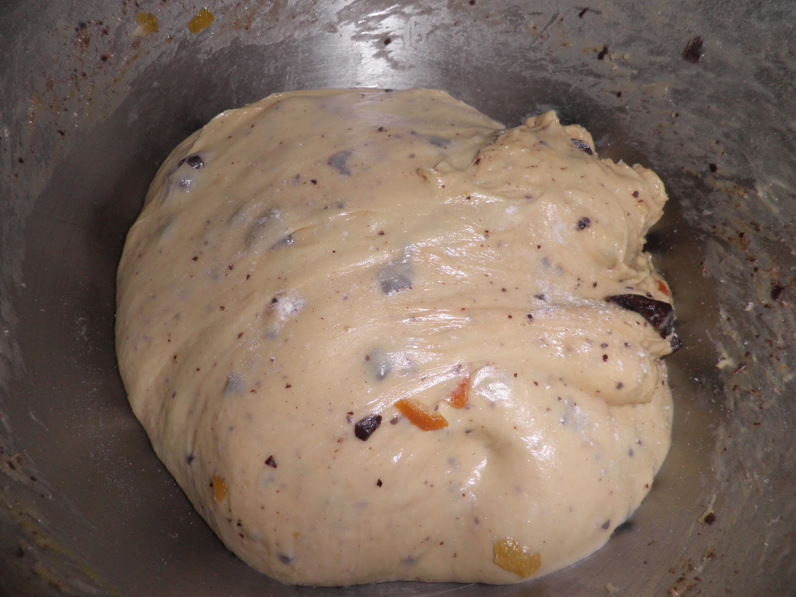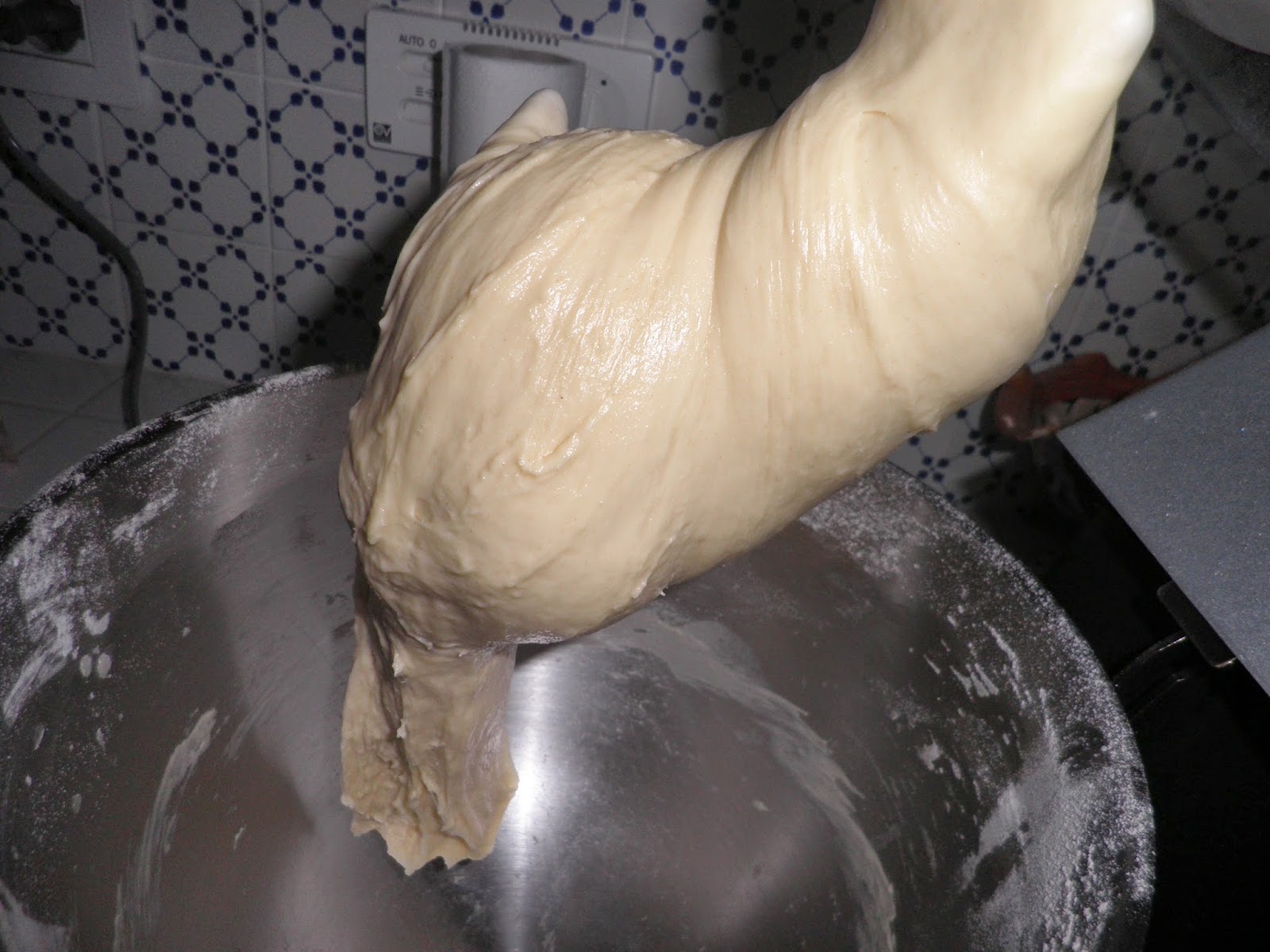 Bisogna cominciare il giorno prima facendo il primo impasto. Nella planetaria sciogliete 110 g di lievito madre ( io me lo ritrovo grazie a Stefano che lo ha fatto “nascere” per il mio divertimento in cucina) con 145 g di acqua leggermente tiepida e un cucchiaio di zucchero; pesiamo 355 g di farina manitoba, 80 g di zucchero, 90 g di burro; uniamo al lievito sciolto 1 uovo intero e un po’ di farina per far partire l’impasto. Alternando zucchero, farina e tre tuorli, uno alla volta, procedete ad impastare. Aggiungete il burro non sciolto, piano piano e impastate fino a quando la massa non diventerà lucida.