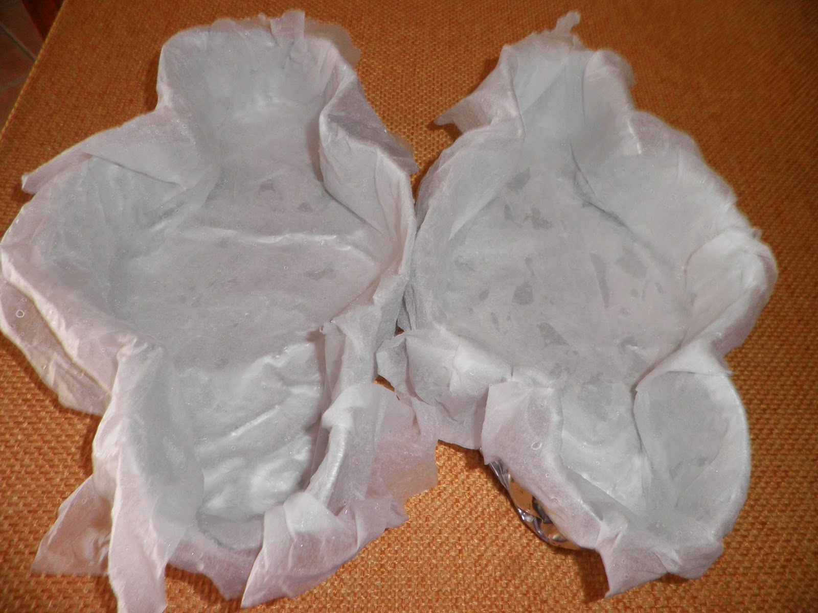 Se non avete a disposizione gli stampi appositi, vi faccio vedere un barbatrucco per rimediarli in casa: mi sono arrangiata modellando due teglie di alluminio e rivestendole di carta da forno bagnata.