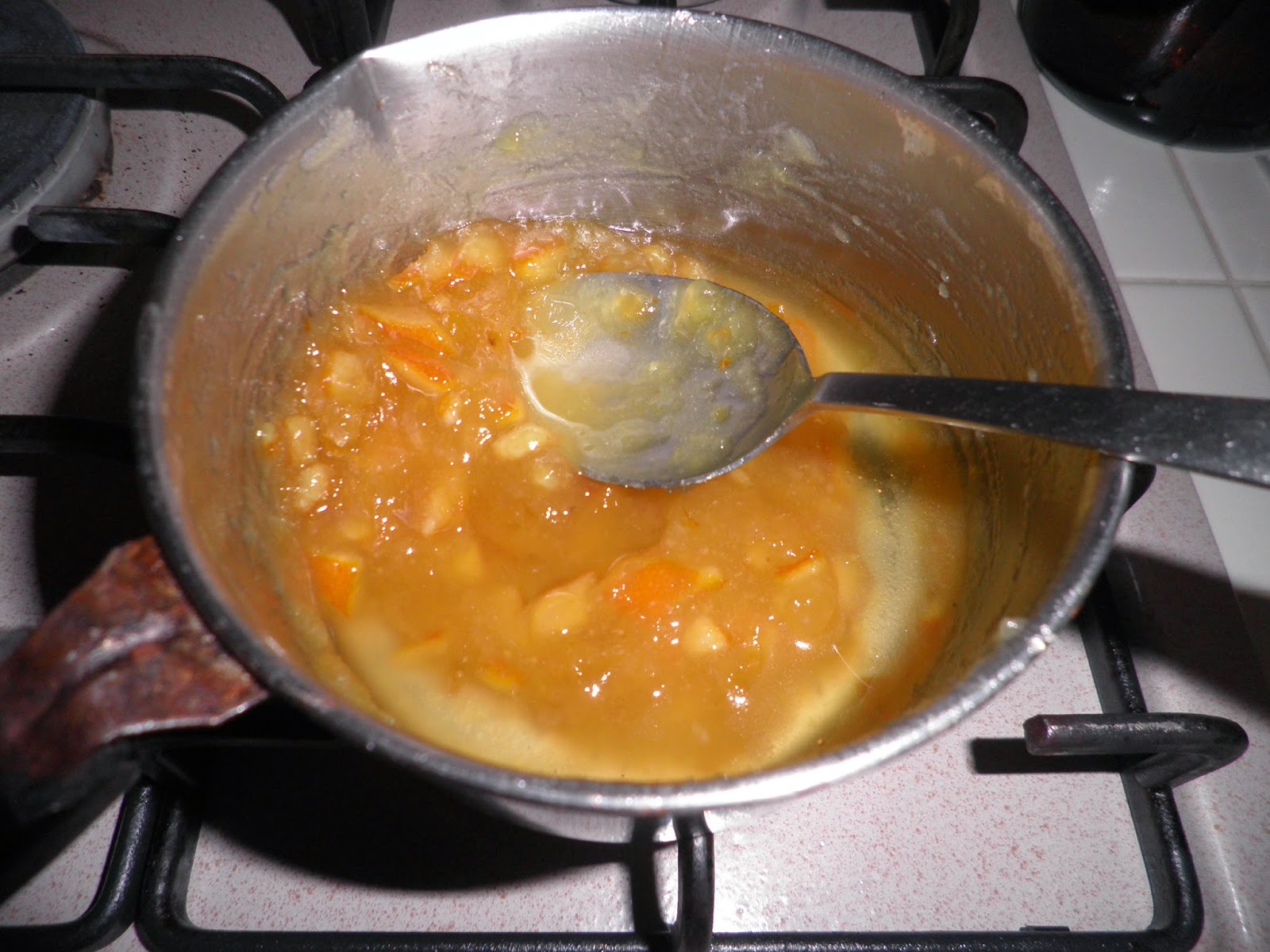 Preparate sul fuoco un’emulsione con 30 g di burro, 15 g di miele d’arancia, semi di vaniglia e buccia d’arancia grattugiata oppure candita tagliata finemente, tre cucchiai di liquore all’arancia. Mettere da parte.