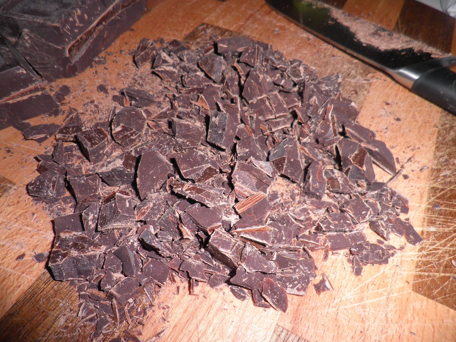Spezzettate grossolanamente 200 g di cioccolato fondente ed aggiungetelo all’impasto, quindi fatelo riposare per un’oretta.