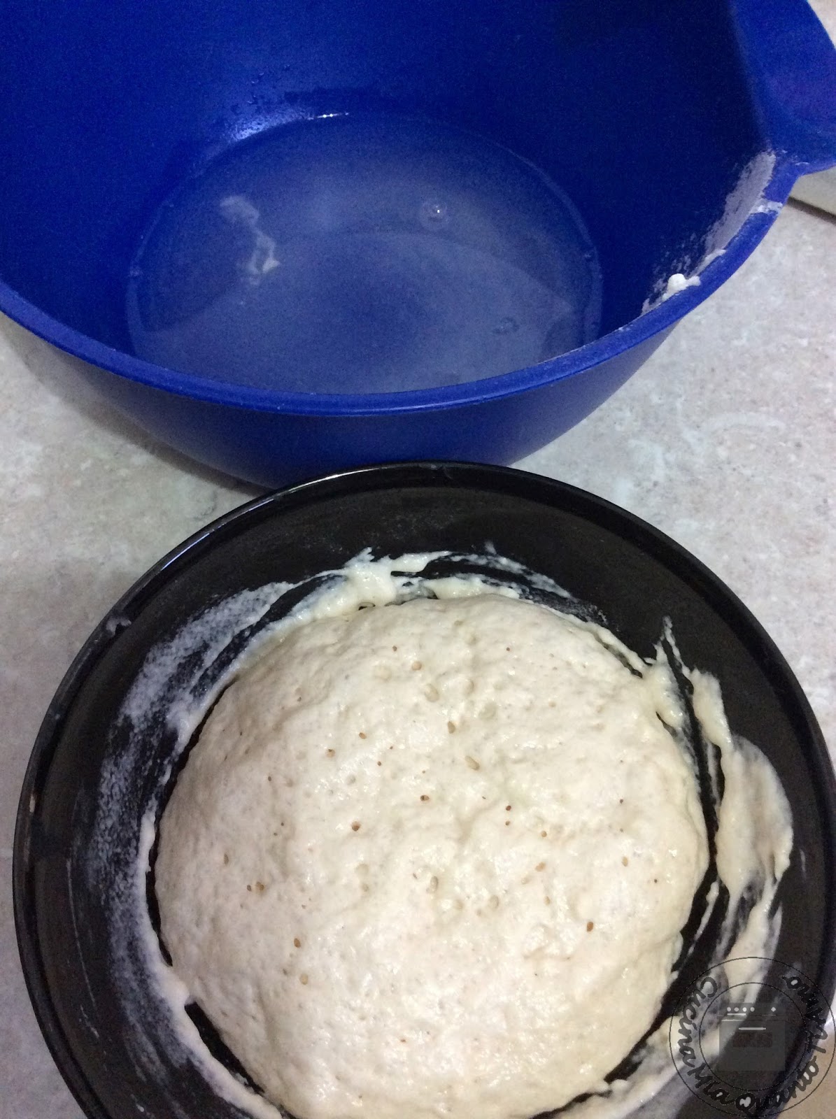 Sciogliete il primo impasto in 130 g di acqua tiepida, aggiungete 100 g di farina, impastate per pochi minuti. Coprite e lasciate lievitare per 40 minuti.