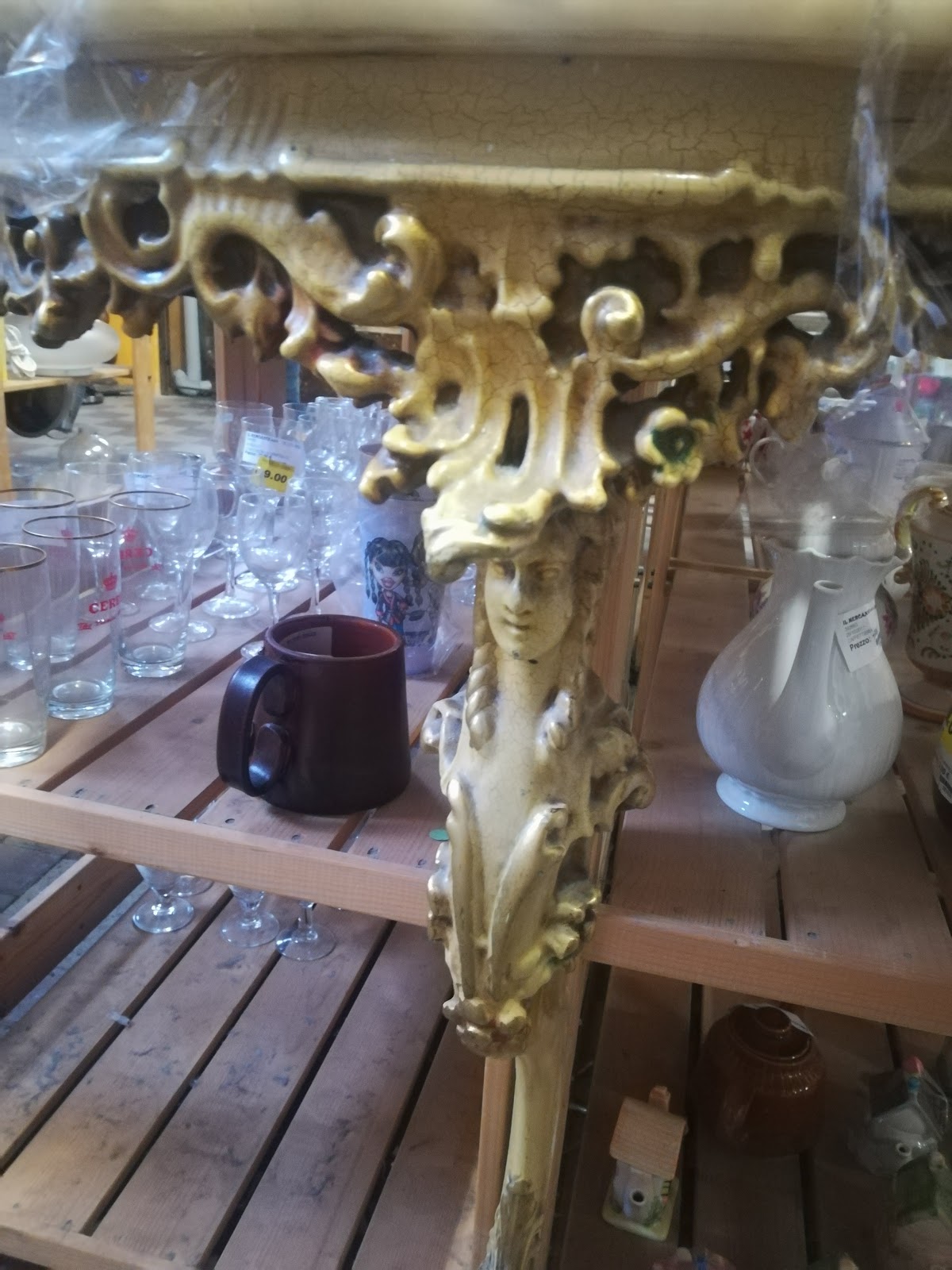 Oggi vi descrivo la “remise en frome” del mio ultimo acquisto al mercatino dell’antiquariato: una consolle in stile barocco veneziano. Uno stile classico rinascimentale ma arricchito con ornamenti rigogliosi e lussureggianti. La consolle, in generale, è pratica e funzionale, occupa poco spazio perché appoggiata alla parete, ha una superficie modesta ma sufficiente. E’ l’ideale da mettere in vani angusti o in stanze poco ampie.
