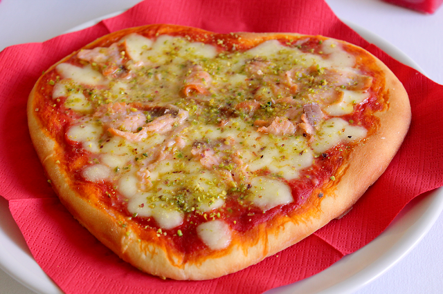 Per stupire davvero il vostro partner, questa Pizza con Salmone Affumicato e Pistacchi Siciliani a forma di cuore sarà particolarmente apprezzata. Vi piace distinguervi? Ecco la Pizza al Carbone Vegetale con Salmone Affumicato e Mozzarella di Bufala.