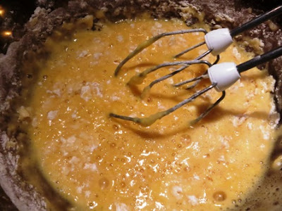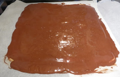 Passati i 3′ levare la teglia dal forno e versare l’impasto scuro spatolando per bene..