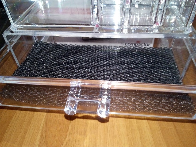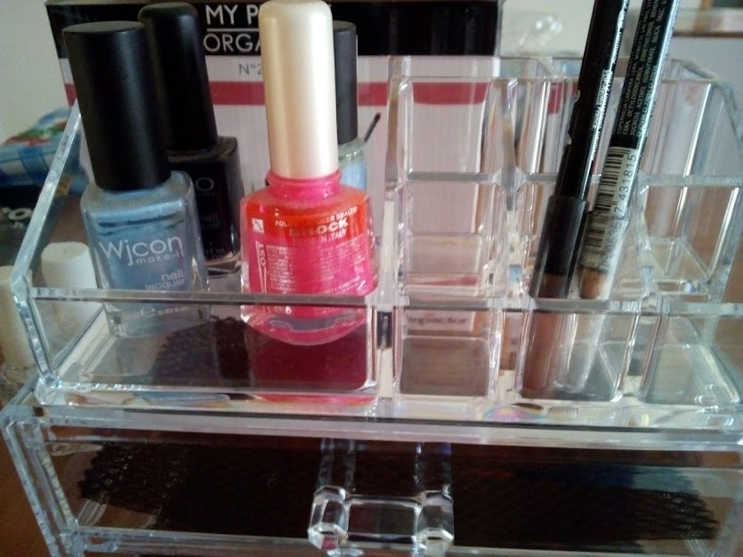 Nell’ampio assortimento potete trovare nella categoria “contenitori per cosmetici” Portatrucchi due cassetti, costo 14.90 in consegna in solo 24 ore in Italia, offre un sistema per poter tenere tutto in ordine, grazie anche ai due cassetti sotto, come potete vedere dalla foto.