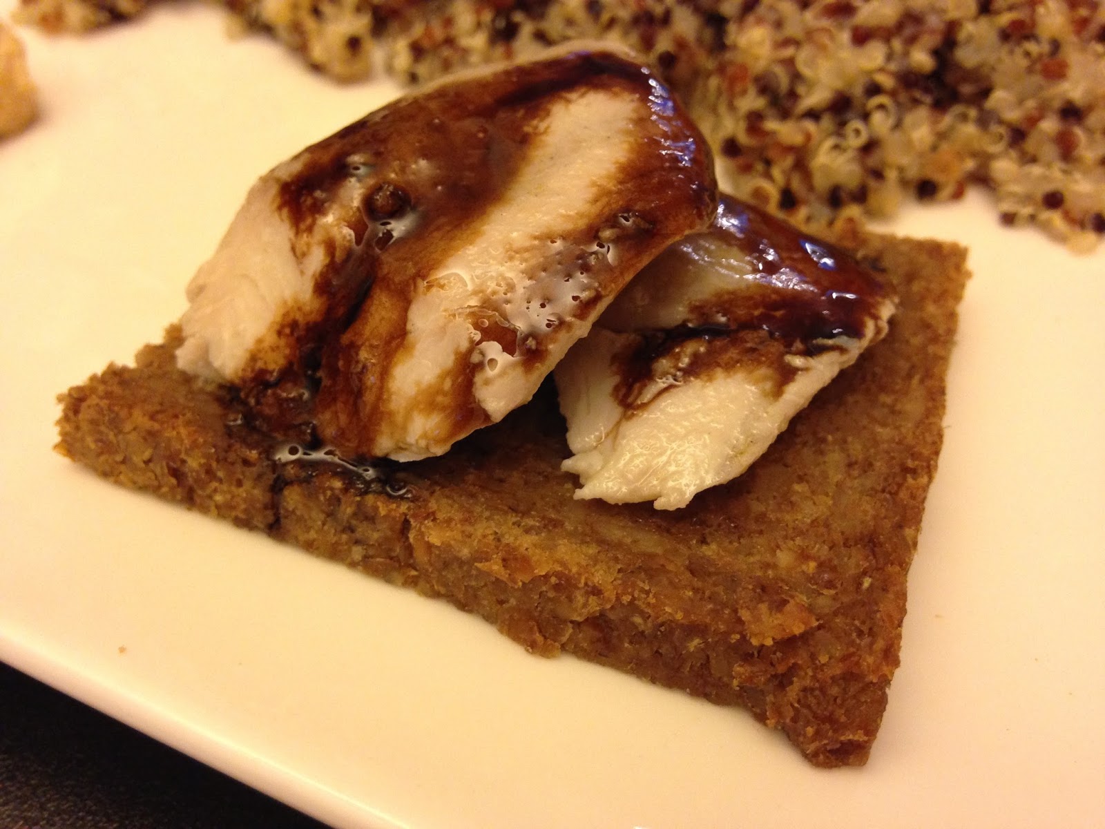 Prendete il pane PEMA di segale integrale, metteteci sopra un po’ di rucola. Mettete i filetti di cefalo e decorate con un po’ di salsa di aceto balsamico. Mettete in piatto.