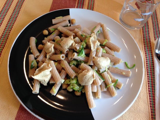 Senza Bimby, Sedanini Semiintegrali al Farro con Zucchine Julienne, Ceci e Hummus