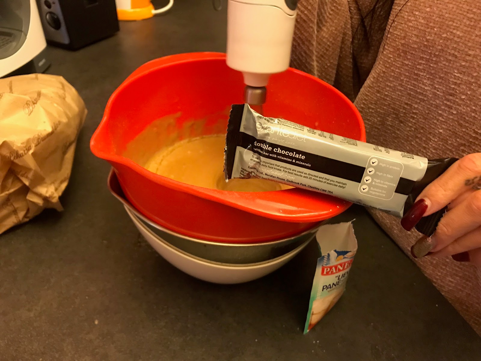 100 gr. di burro morbido, 150 gr. di zucchero di canna grezzo, scorza di 1⁄2 limone, succo di 1 limone, 4 uova, 200 gr di farina (io ho utilizzato la Farina d’Avena di Empro Nutrition Gusto: Waffle con Cioccolato acquistata su Masmusculo), 1 pizzico di sale, 1 bustina di lievito, 1 Barretta Doppio Cioccolato di Exante.